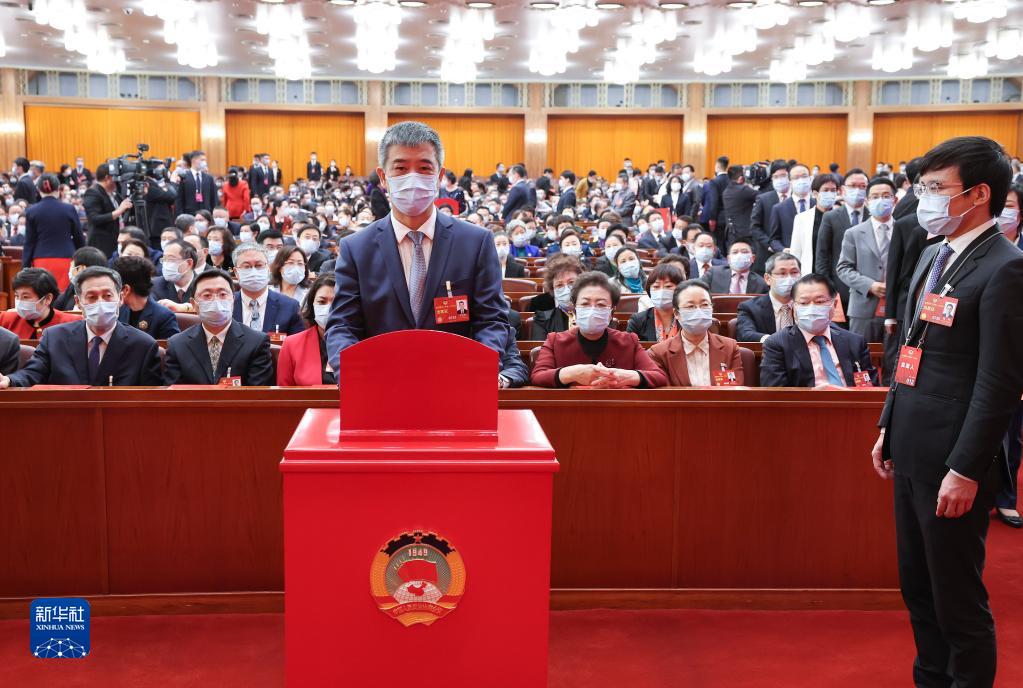 3月10日,全國政協十四屆一次會議在北京人民大會堂舉行第三次全體會議。這是委員在投票。