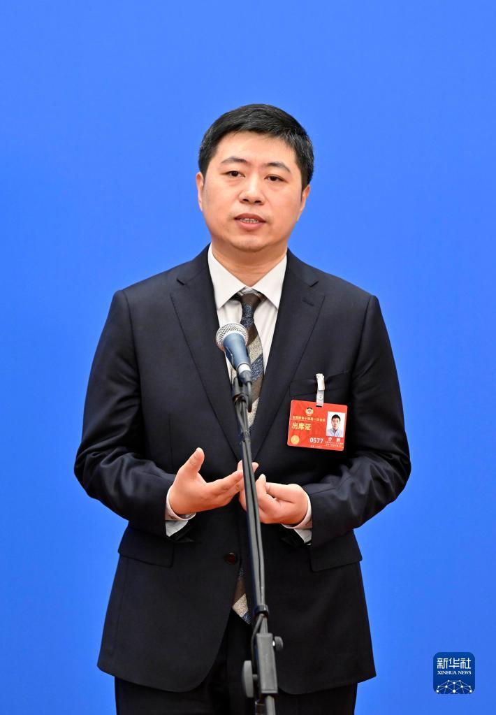 3月11日,全國政協十四屆一次會議第三場“委員通道”集體采訪活動在北京人民大會堂新聞發布廳舉行。這是全國政協委員曹鵬接受媒體采訪。