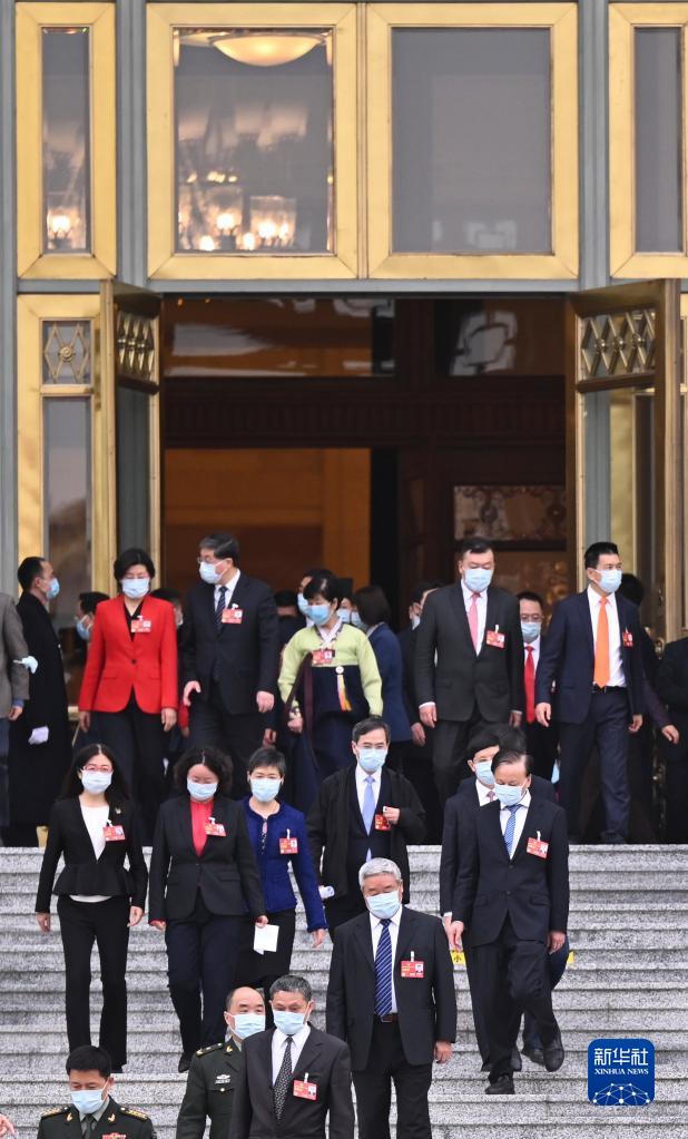 3月11日,中國人民政治協(xié)商會議第十四屆全國委員會第一次會議在北京人民大會堂舉行閉幕會。這是閉幕會后,委員們走出人民大會堂。