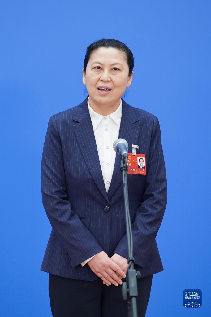 3月12日,第十四屆全國人民代表大會第一次會議舉行第三場“代表通道”采訪活動。這是全國人大代表馮丹接受媒體采訪。