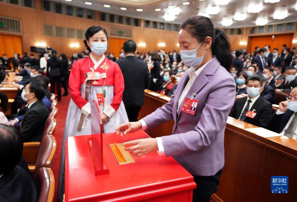 3月12日,十四屆全國人大一次會議在北京人民大會堂舉行第五次全體會議。這是代表在投票。