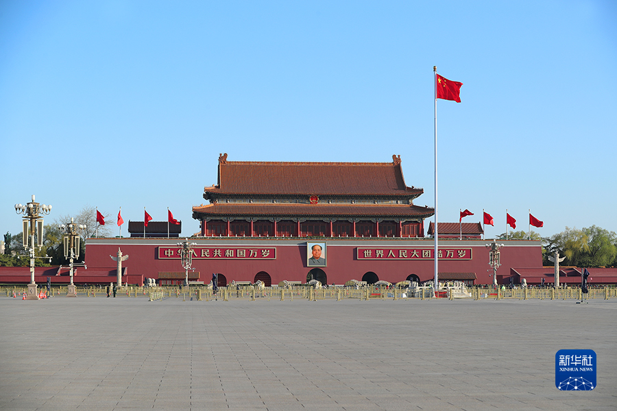 3月12日上午9時,十四屆全國人大一次會議在人民大會堂舉行第五次全體會議。圖為天安門廣場。新華網記者 焦鵬 攝