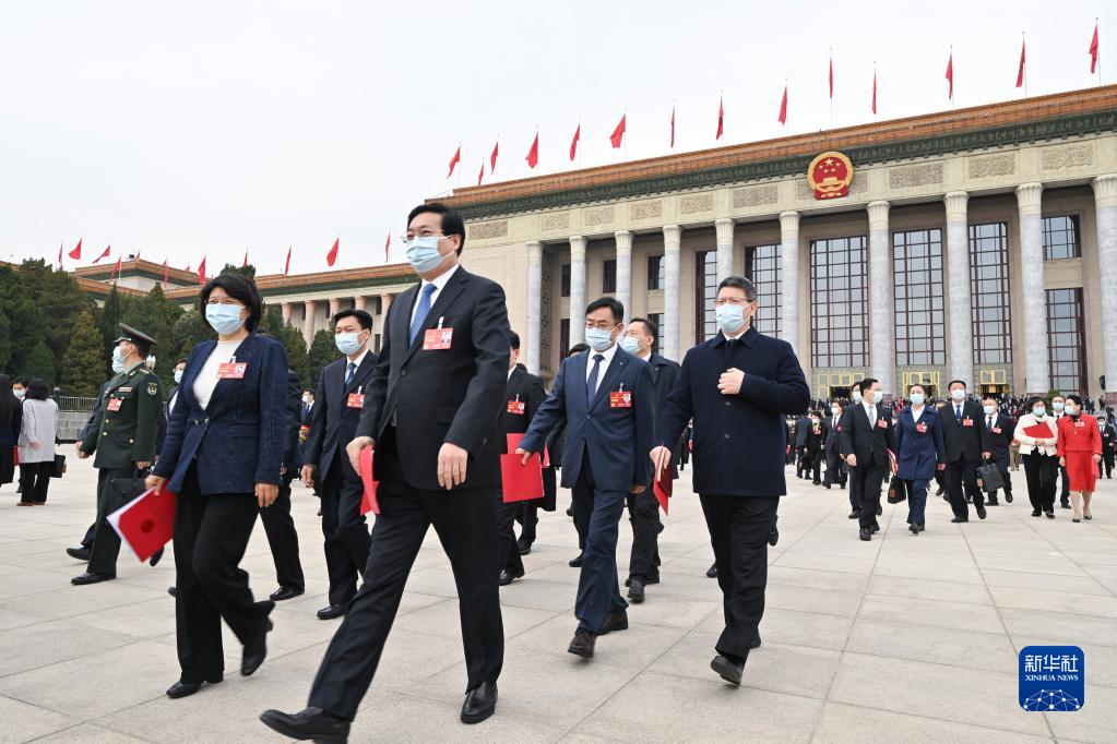 3月13日,第十四屆全國人民代表大會第一次會議在北京人民大會堂舉行閉幕會。這是閉幕會后,代表走出人民大會堂。
