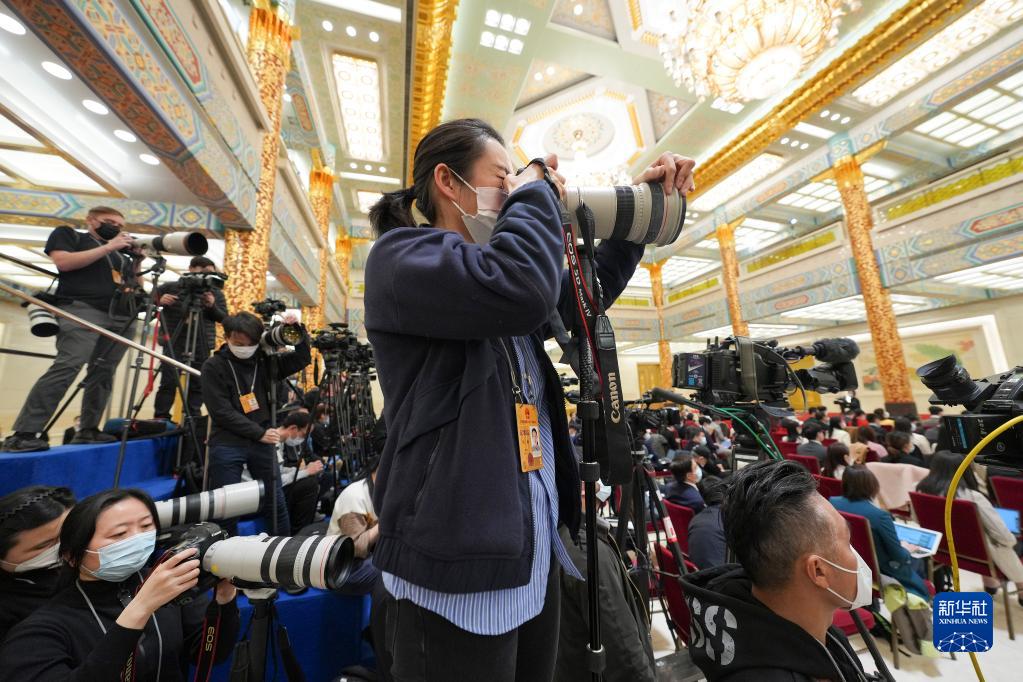 3月13日,十四屆全國人大一次會議在北京人民大會堂舉行記者會,國務院總理李強出席并回答中外記者提問。國務院副總理丁薛祥、何立峰、張國清、劉國中參加。這是記者在現場采訪。