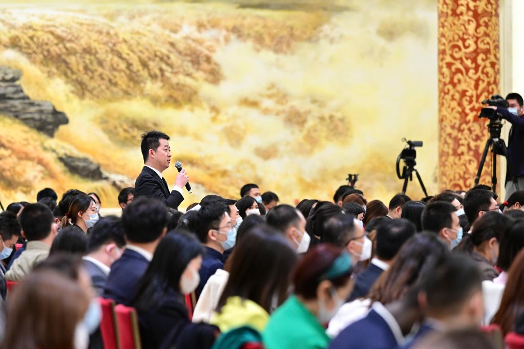 3月13日,十四屆全國人大一次會議在北京人民大會堂舉行記者會,國務院總理李強出席并回答中外記者提問。國務院副總理丁薛祥、何立峰、張國清、劉國中參加。這是記者在現場提問。