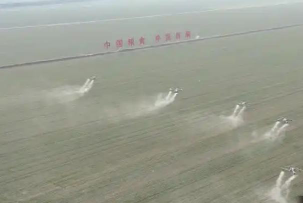 在陕西省渭南市大荔县渭河滩区的粮食绿色高产高效行动项目万亩示范区,6台农用无人机、4台自组式高杆喷雾机等新型农用机械为麦田实施化学除草、追肥等作业,实现精准定位、便捷操作,全程高质高效。