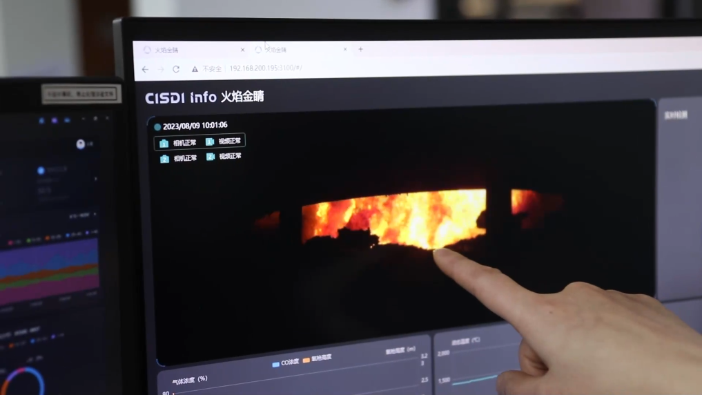 中冶赛迪信息机器视觉产品部部长庞殊杨和团队研发的CISDigital AI金睛系统,将一体化智能相机与AI智能算法结合,它的一个重要的应用场景就是在转炉炼钢环节。
