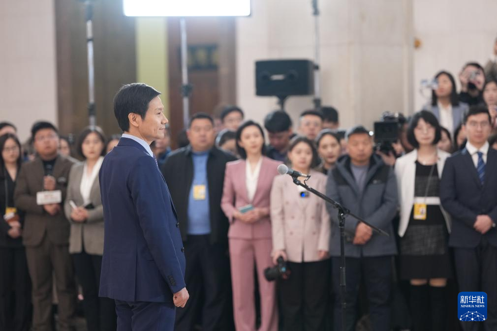 3月5日,第十四届全国人民代表大会第三次会议首场“代表通道”集中采访活动在北京人民大会堂举行。这是全国人大代表雷军接受媒体采访。