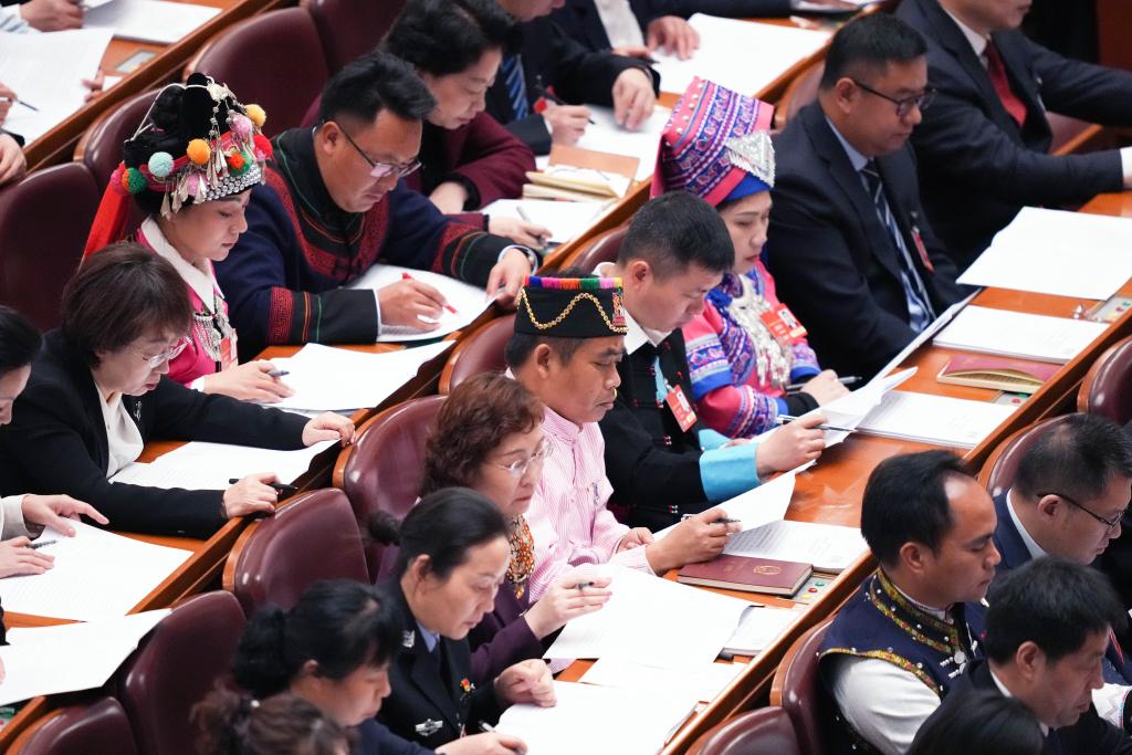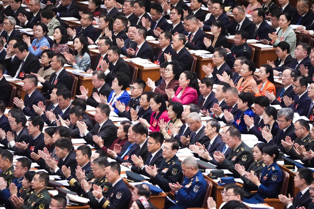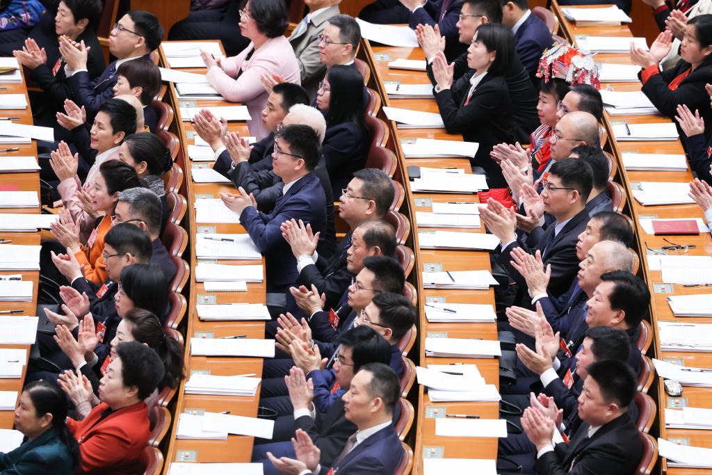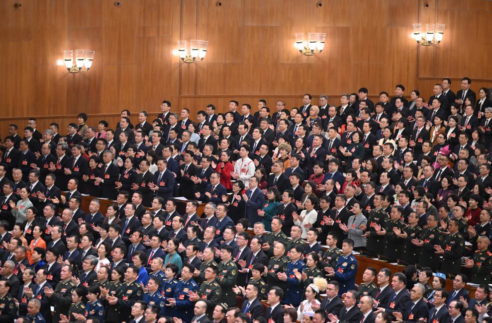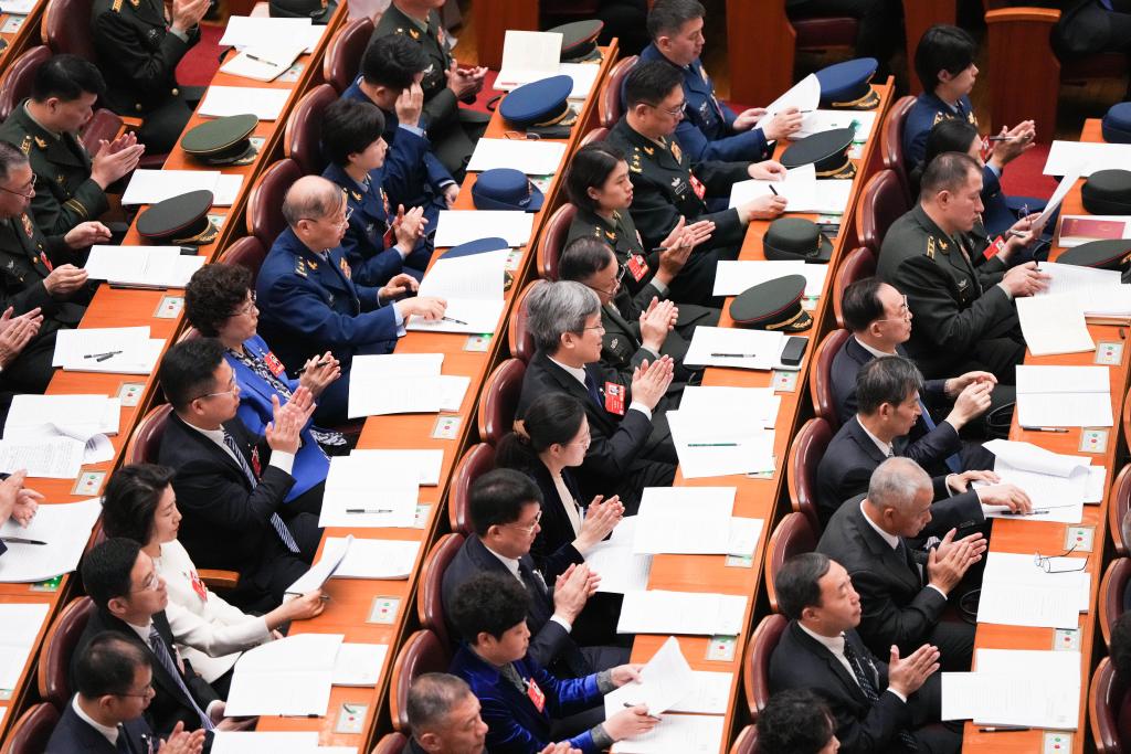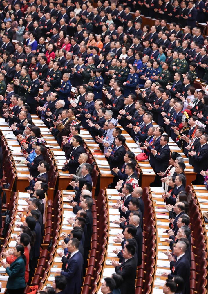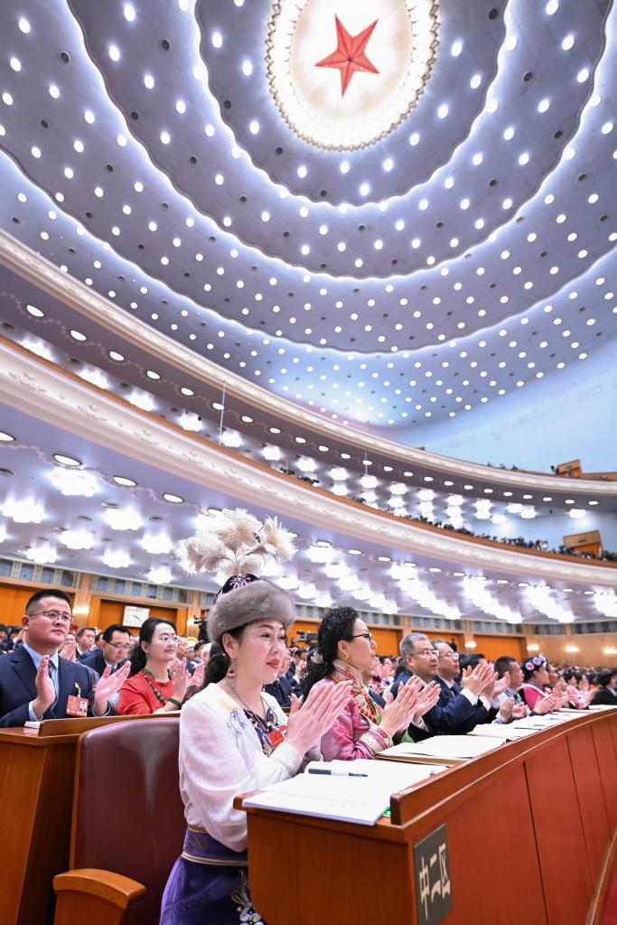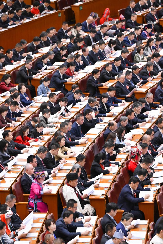 3月5日,十四届全国人大三次会议开幕会在北京人民大会堂举行。这是全国政协委员列席大会。