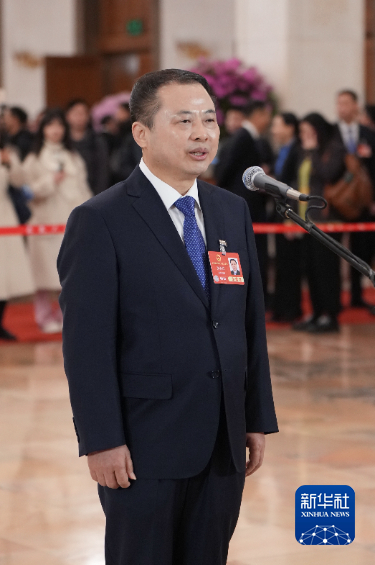 3月5日,第十四届全国人民代表大会第三次会议首场“代表通道”集中采访活动在北京人民大会堂举行。这是全国人大代表张天任接受媒体采访。新华社记者 刘大伟 摄