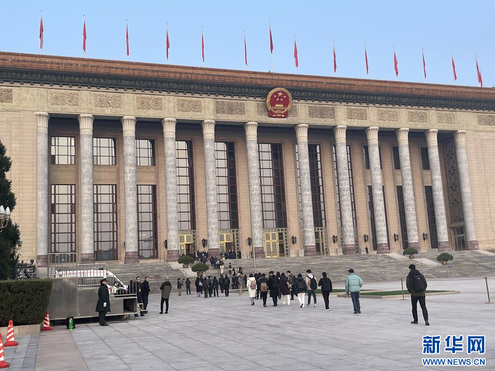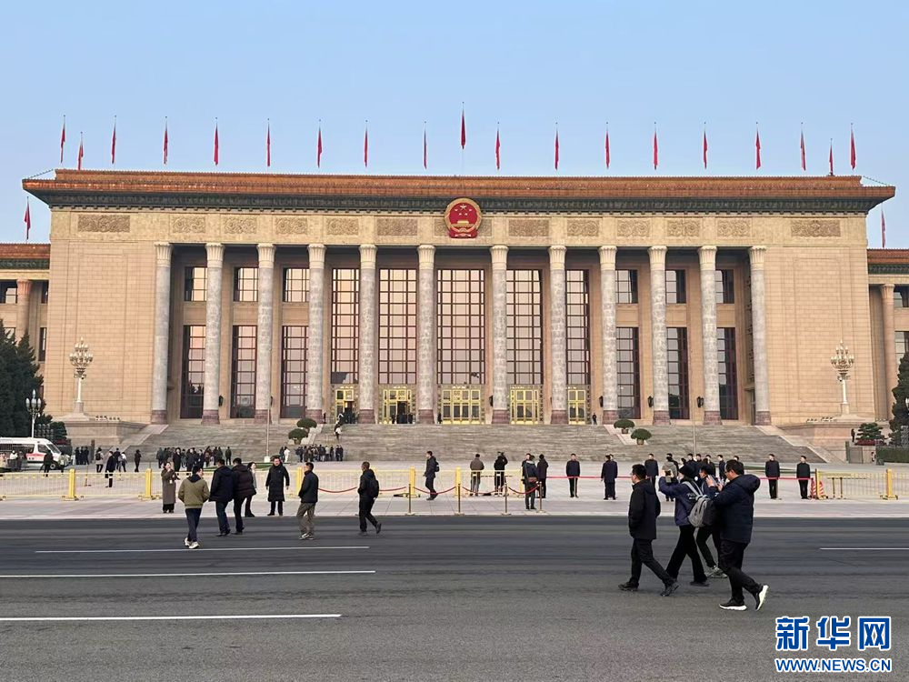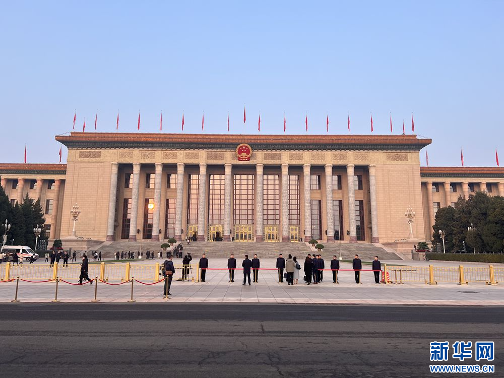 3月8日,十四届全国人大三次会议在北京人民大会堂举行第二次全体会议。图为人民大会堂外景。新华网记者 王翰林 摄
