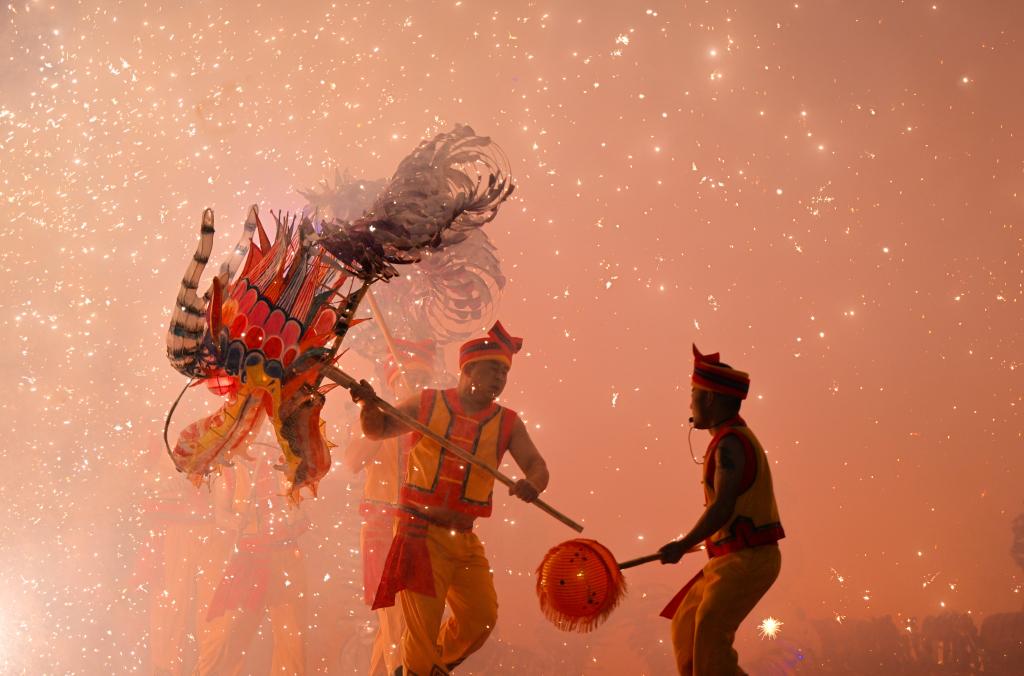 农历正月十五元宵节,民间艺人在湖北省恩施土家族苗族自治州宣恩县人民广场舞火龙(2025年2月12日摄)。新华社发(宋文摄)