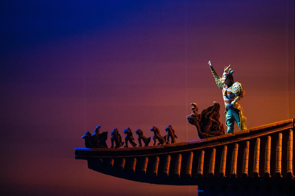 以故宫瑞兽“甪端”为原型的故宫博物院首部儿童音乐剧《甪端》在香港首演。(2024年5月1日摄)。新华社记者 朱炜 摄