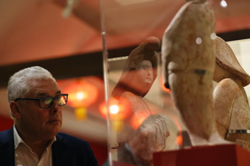 在位于法国巴黎的吉美国立亚洲艺术博物馆,一名观众参观“中国·唐——一个多元开放的朝代(7至10世纪)”展览(2024年11月18日摄)。新华社记者 高静 摄