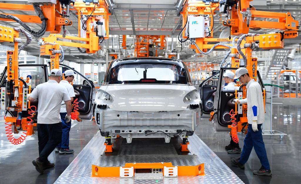 在广西柳州市上汽通用五菱精益智造工厂,工人在生产线上工作(2024年5月9日摄)。新华社记者 金皓原 摄