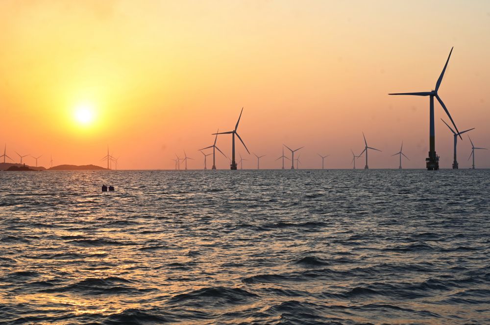 2025年1月19日拍摄的福建莆田平海湾海上风电场(无人机照片)。新华社记者 林善传 摄