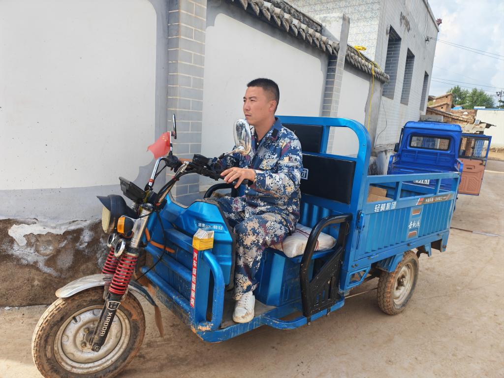 8月10日,王栋驾驶农用车准备运送物资。新华社记者 崔翰超 摄