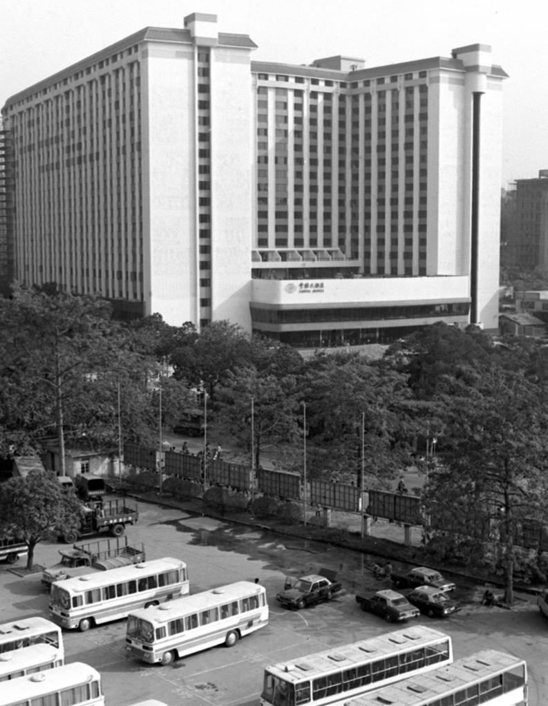 与中国出口商品交易会大厦隔路相望的中国大酒店。(1984年6月12日发)
