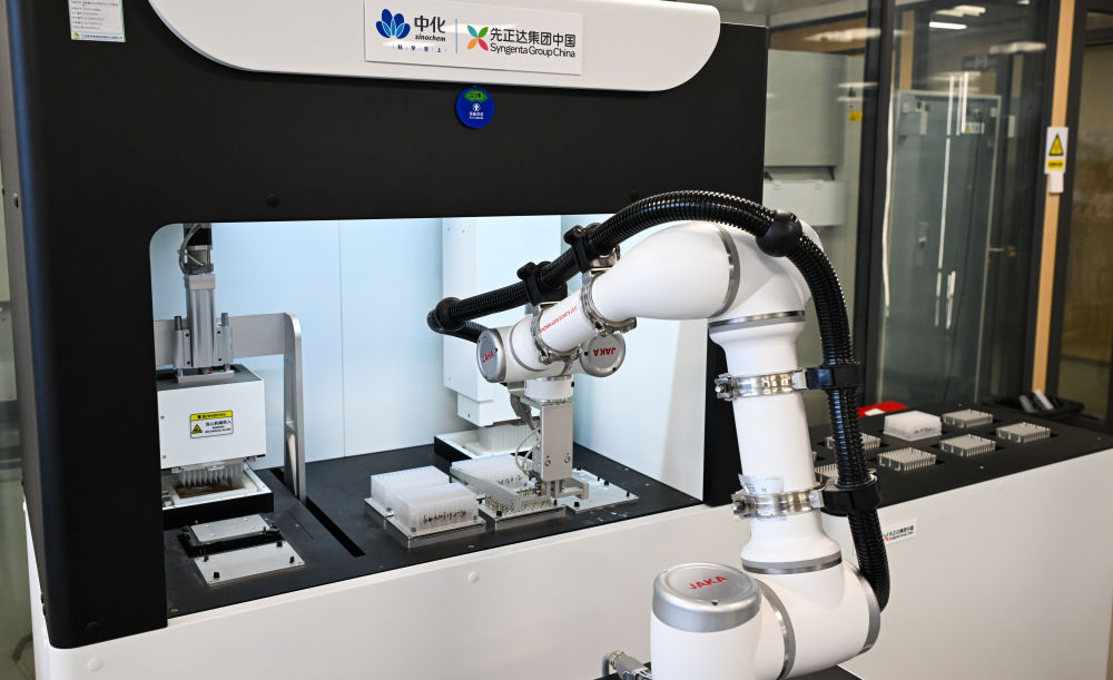 这是9月26日在海南三亚崖州湾科技城中国种子集团有限公司拍摄的全自动高通量核酸提取平台。新华社记者 杨冠宇 摄