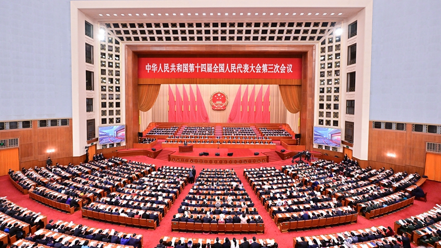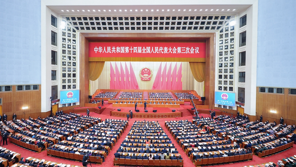 - 第十四屆全國人民代表大會第三次會議5日上午在北京人民大會堂開幕。近3000名全國人大代表肩負人民重托出席大會,履行憲法和法律賦予的神圣職責。