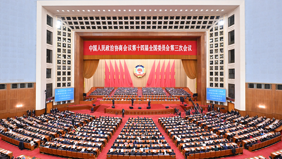 全国政协十四届三次会议在北京人民大会堂举行闭幕会