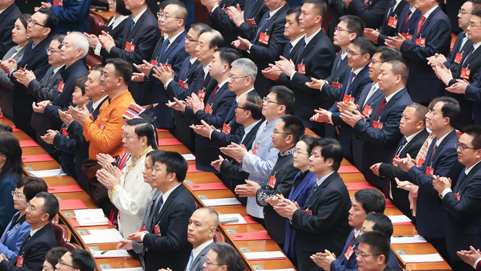 习近平等党和国家领导人出席十四届全国人大三次会议闭幕会