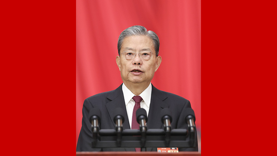 受全国人大常委会委托,赵乐际委员长向大会报告全国人大常委会工作