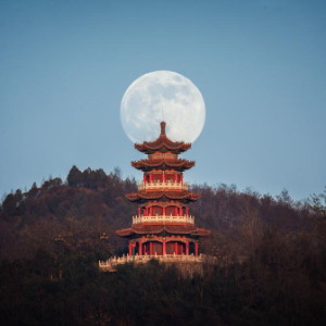 “通常来说,无论是用相机还是手机拍摄,都需要中长焦段;镜头的焦距越长,月亮会显得越大。如果拍摄人物与月亮、景物与月亮相结合的画面,最好选择蓝调时刻,也就是在日出前或日落后的短暂时间段进行拍摄,此时天光尚存,人像、景物与月亮的光比不会太大,结合起来更为自然。”钟奕建议。