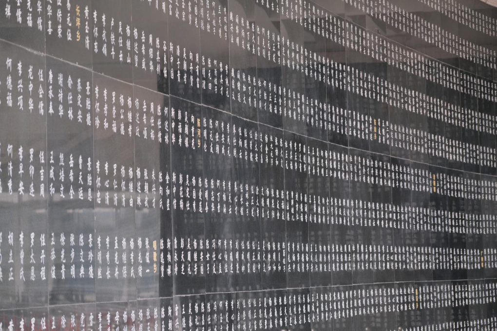 ↑川陕革命根据地红军烈士陵园内,镌刻着红军烈士姓名的英烈纪念墙。新华社记者高玉娇 摄