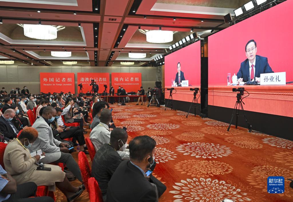 10月15日,中國(guó)共產(chǎn)黨第二十次全國(guó)代表大會(huì)新聞發(fā)言人孫業(yè)禮在北京人民大會(huì)堂舉行新聞發(fā)布會(huì)。這是分會(huì)場(chǎng)。