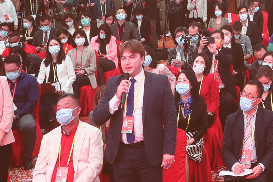 中國共產黨第二十次全國代表大會新聞發言人2022年10月15日(星期六)16時30分在人民大會堂舉行新聞發布會。圖為