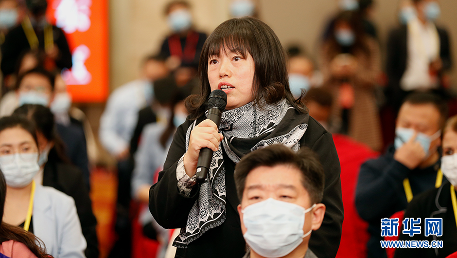 10月18日(星期二)15:00,二十大新聞中心在梅地亞新聞中心二層新聞發布廳舉辦第一場集體采訪。圖為香港經濟導報記者在分會場提問。(新華網 陳杰 攝)