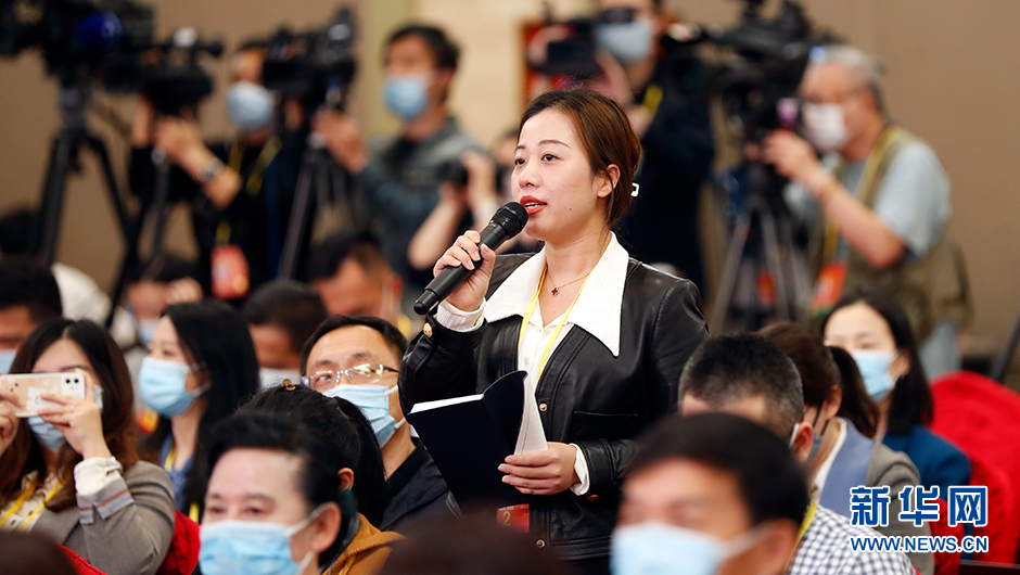 10月18日(星期二)19:30,二十大新聞中心在梅地亞新聞中心二層新聞發布廳舉辦第二場集體采訪。圖為澎湃新聞記者在分會場提問。(新華網 陳杰 攝)