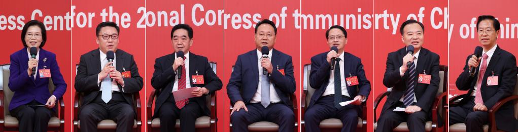 10月18日,中國(guó)共產(chǎn)黨第二十次全國(guó)代表大會(huì)新聞中心舉行集體采訪。黑龍江、上海、江蘇、浙江、安徽、福建、江西代表團(tuán)新聞發(fā)言人出席,介紹代表團(tuán)學(xué)習(xí)討論二十大報(bào)告情況,并回答記者提問(wèn)(拼版照片)。