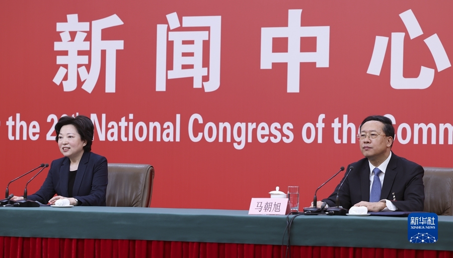 10月20日,中國(guó)共產(chǎn)黨第二十次全國(guó)代表大會(huì)新聞中心舉行記者招待會(huì)。中央對(duì)外聯(lián)絡(luò)部副部長(zhǎng)沈蓓莉,外交部黨委委員、副部長(zhǎng)馬朝旭圍繞“習(xí)近平外交思想指引中國(guó)特色大國(guó)外交開(kāi)拓前行”主題與記者交流。