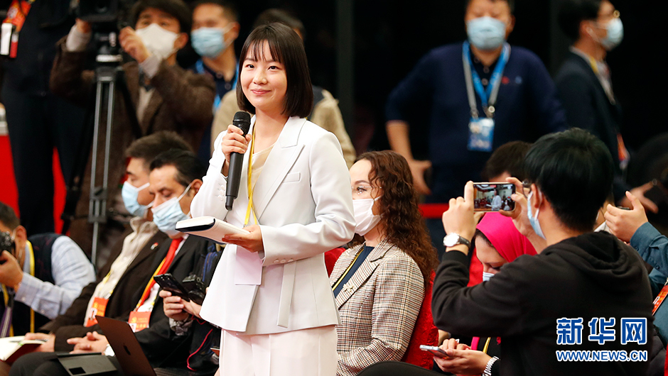 10月20日(星期四)10:00,二十大新聞中心在梅地亞新聞中心二層新聞發布廳舉辦第四場記者招待會。圖為中國日報記者在分會場提問。(新華網 陳杰 攝)