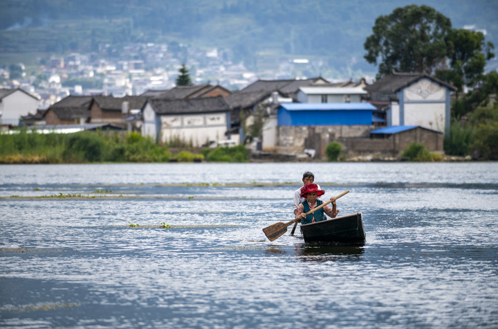 9月28日,洱源西湖當?shù)卮迕駝澊鲂小P氯A社記者 陳欣波 攝