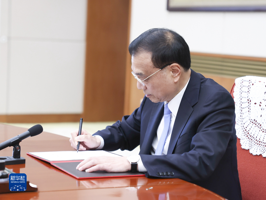 5月20日,國務院總理李克強在北京主持召開國務院第七次全體會議,決定任命李家超為香港特別行政區第六任行政長官,于2022年7月1日就職。這是李克強總理簽署任命李家超為香港特別行政區第六任行政長官的國務院第754號令。新華社記者 丁林 攝