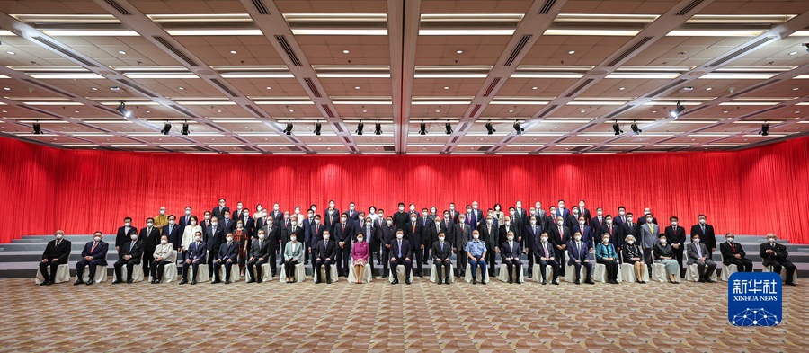 6月30日下午,國家主席習近平在香港會見香港特別行政區行政、立法、司法機關負責人。新華社記者 鞠鵬 攝