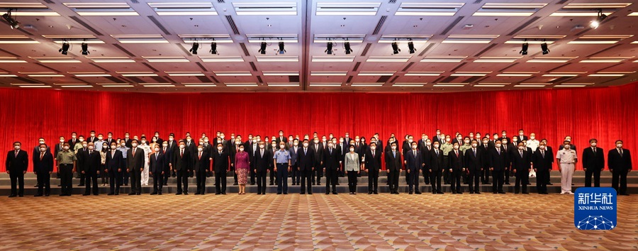 6月30日下午,中共中央總書記、國家主席、中央軍委主席習近平在香港會見中央駐港機構和主要中資機構負責人。新華社記者 鞠鵬 攝