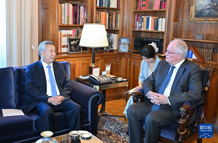 9月17日至20日,应希腊新民主党邀请,中共中央政治局常委、中央纪委书记李希率中共代表团对希腊进行正式友好访问。这是当地时间9月19日,李希在雅典会见希腊总统塔苏拉斯。新华社记者 岳月伟 摄