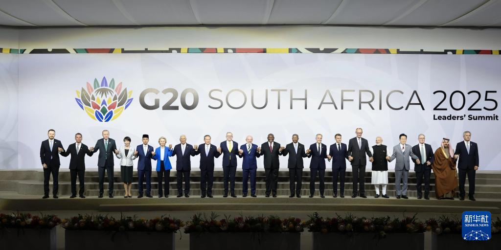 当地时间11月22日,国务院总理李强在约翰内斯堡出席二十国集团领导人第二十次峰会第一阶段会议,就“包容和可持续经济增长”议题发表讲话。这是与会领导人集体合影。新华社记者 黄敬文 摄
