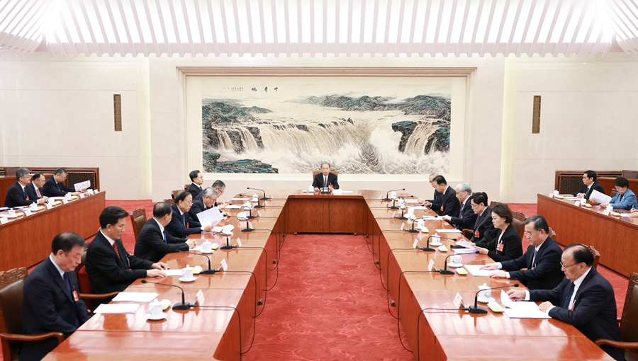 3月12日上午,十四届全国人大四次会议主席团常务主席第三次会议在北京人民大会堂举行。大会主席团常务主席、全国人大常委会委员长赵乐际主持会议。新华社记者 丁海涛 摄
