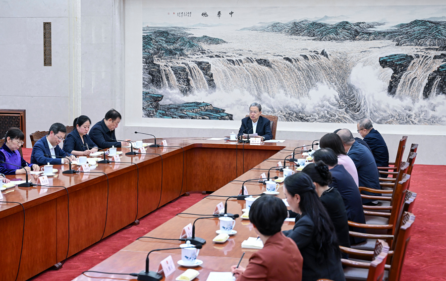 4月29日下午,中共中央政治局常委、全国人大常委会委员长赵乐际同列席十四届全国人大常委会第二十二次会议的全国人大代表座谈交流。新华社记者 张领 摄