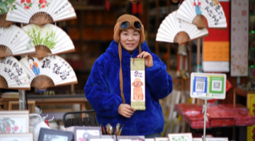 1月17日,人们在非遗集市上选购文创产品。