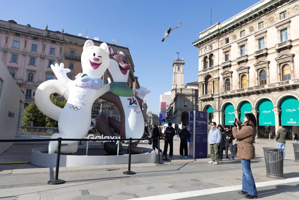 6日上午,国际奥委会与米兰冬奥组委在米兰共同举行倒计时一周年庆祝活动。米兰大教堂广场上,一块巨大的倒计时牌正式启动,与冬奥会吉祥物——白鼬姐弟蒂娜和米罗一同亮相,吸引大批市民和游客驻足拍照,现场气氛热烈。