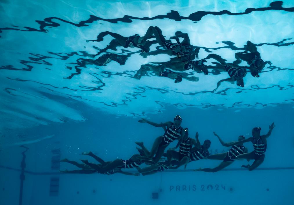 2024年8月5日,墨西哥队在巴黎奥运会花样游泳集体技术自选比赛中。
