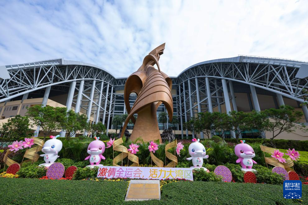位于广州的广东省奥体中心游泳跳水馆外景(10月17日摄)。全运会跳水、水球比赛在这里举行。