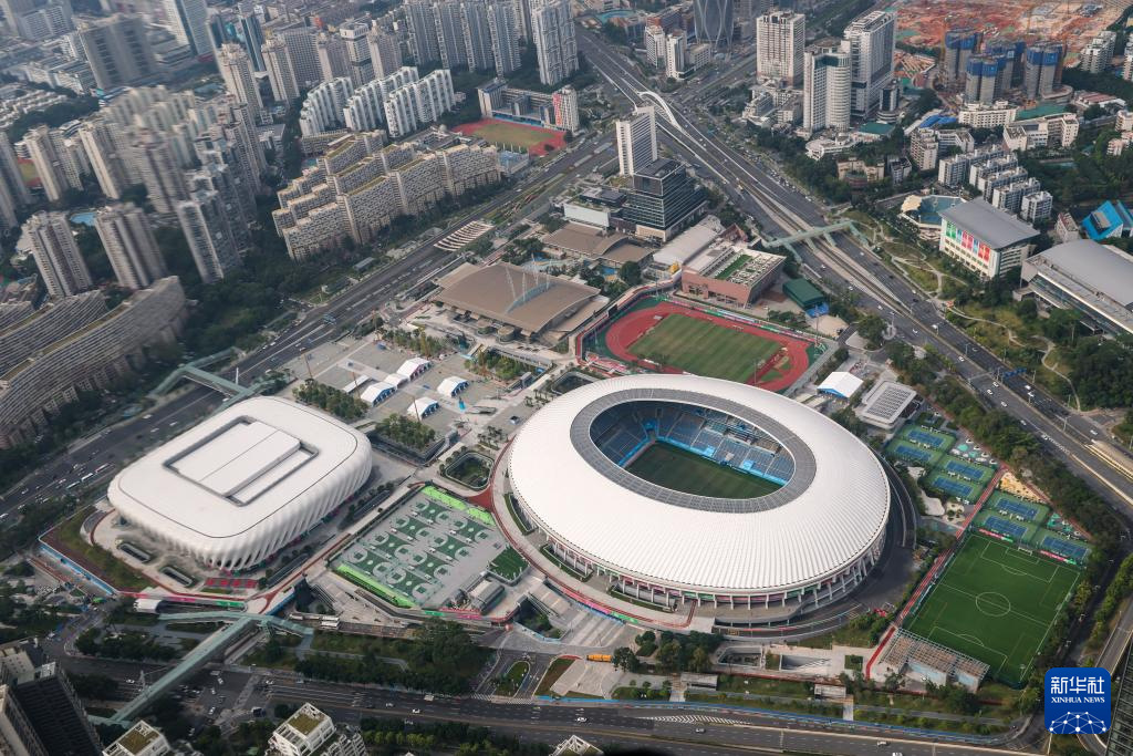 深圳市体育中心(11月2日摄)。全运会羽毛球、射箭、足球男子20岁以下组部分比赛及足球男子18岁以下组部分比赛在这里举行。