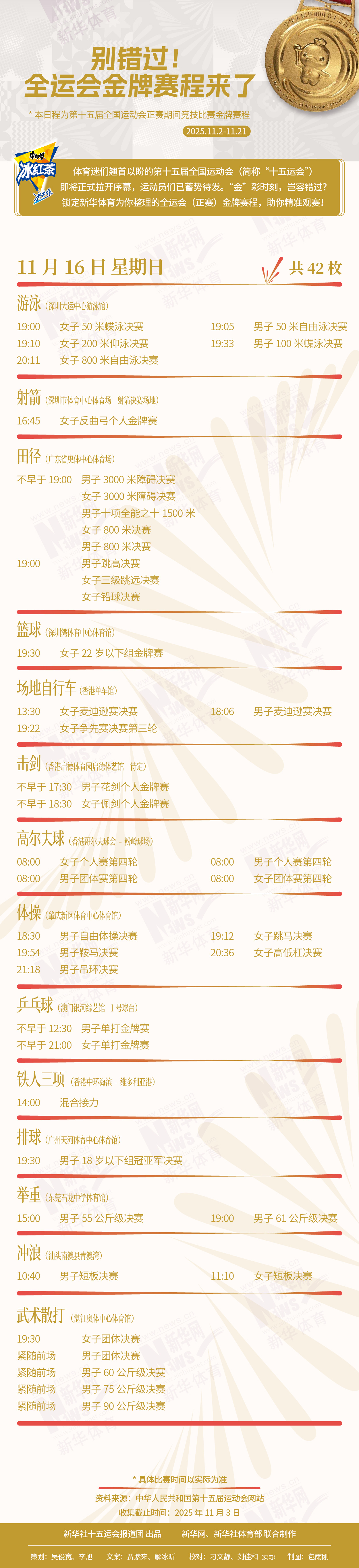 11月16日金牌赛程-新华网